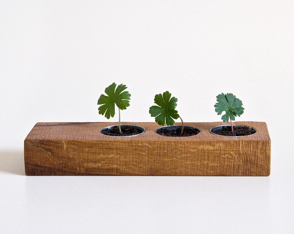 With a few changes the candle holder turns into a small seed starter for urban gardeners. Fill empty tealight cups with soil and put some seeds into each cup.